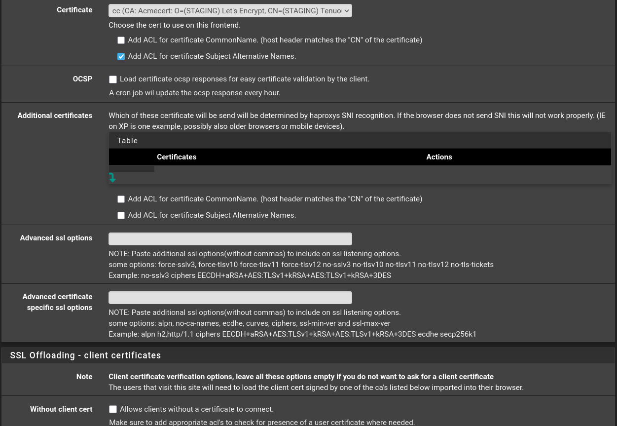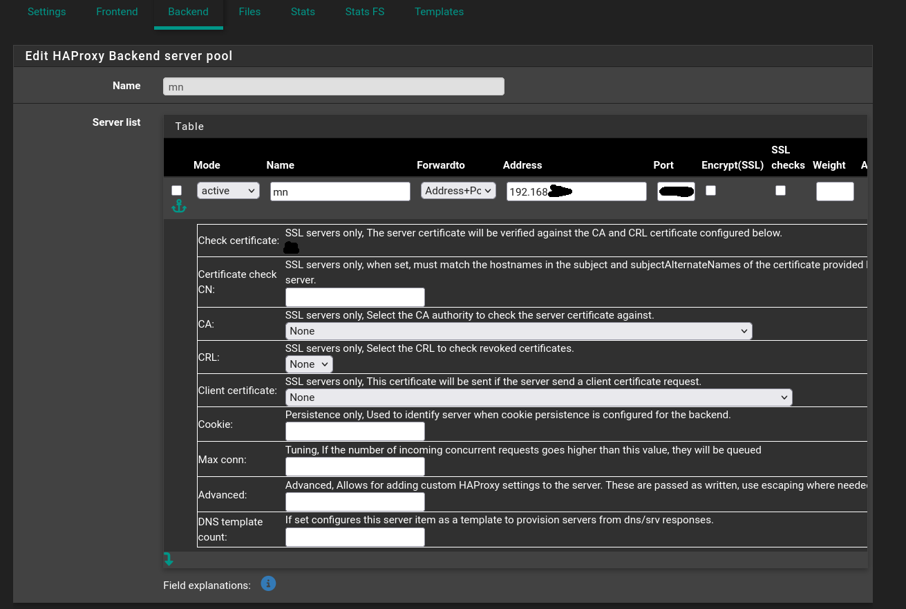 Initially, I believed I had achieved a successful configuration, only to discover that HAProxy was, in fact, disabled, and traffic was being directed to my server via PFsense NAT functionality.