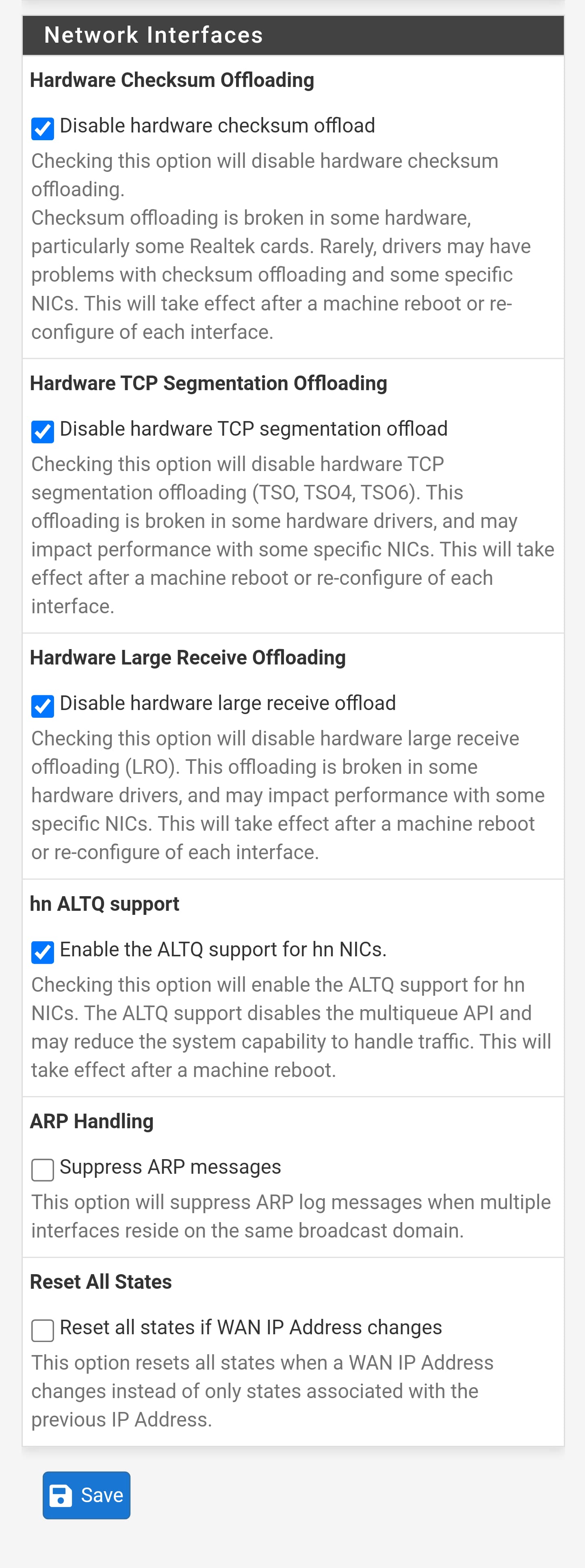 Just to be sure, under the pfsense web interface, in system → advanced → networking
