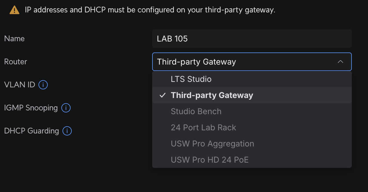 You will need to recreate the VLANs under the cloud gateway Max-UniFi would not let you switch from “3rd party router“ directly. Avoid deleting VLAN. Instead, create the same VLANs on the new gateway, reassign ports manually, then migrate one VLAN at a time for a clean transition.