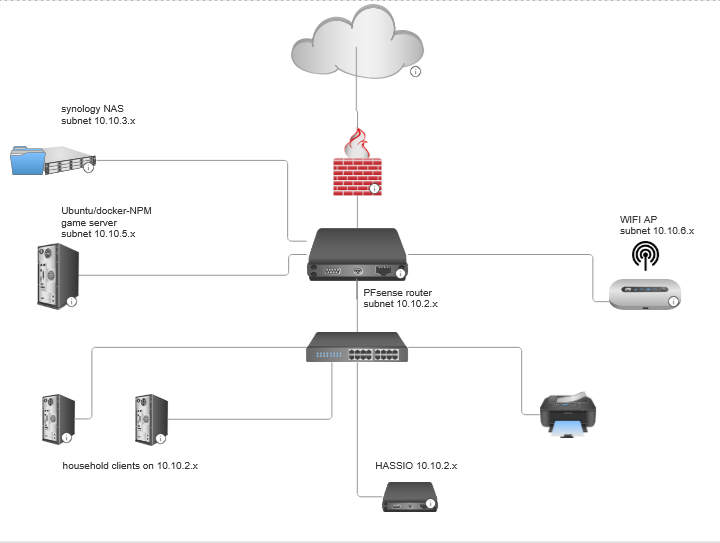 pfsense is configured as it should with 80/443 open to WAN and all LAN subnet open to each other