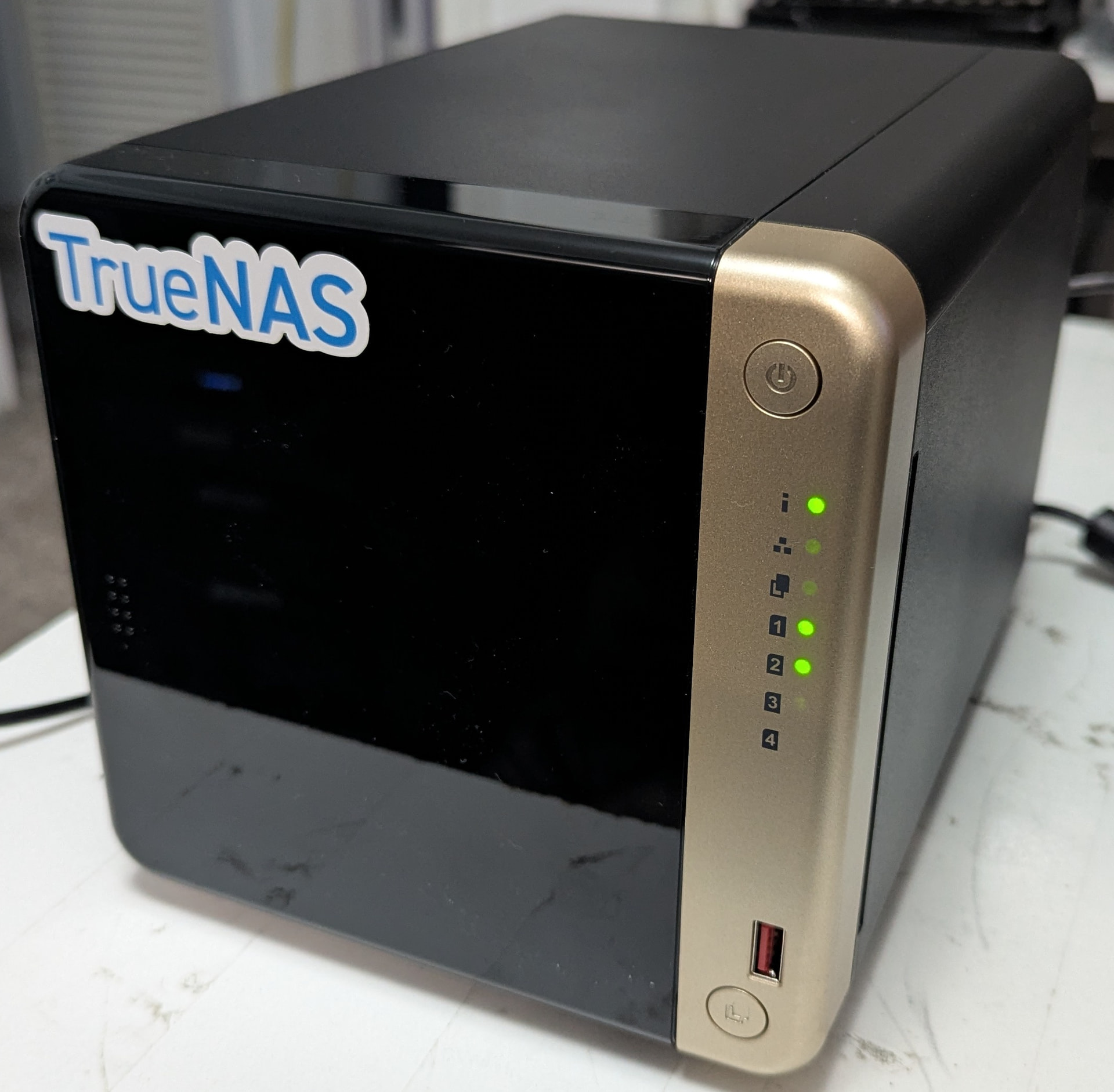 Anyhoo…I rescued it, installed TrueNAS on it and re-badged it more appropriately. Was a quick and satisfying way to keep just one of our toys out of the landfill and put previously poorly used hardware to good use. Huzzah!