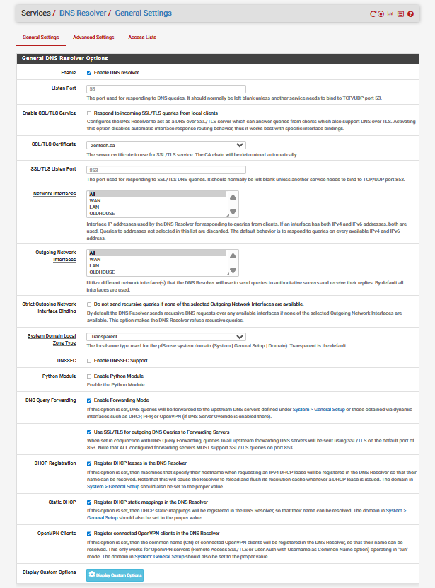 When you enable Forwarding Mode, you need to define upstream DNS server under System / General setup. Otherwise you should disable that option. Also, if you enable “Use SSL/TLS for outgoing DNS Queries to Forwarding Servers” option, you need to define a host name under System / General setup or just disable that option as well. The last three options in your DNS settings should also be disabled unless you really know what you are doing and you actually need them. It seems to me you just enabled everything without knowing what those options do.
