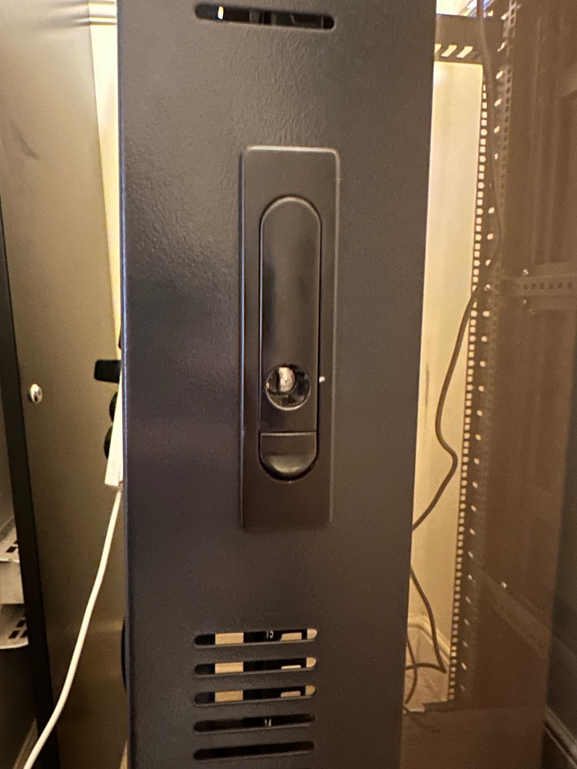 The server rack has a missing lock at the front which I would like to replace but as I dont know the make, would anyone be able to look at the photos and possibly give me a name of what lock I can use? or if I need to buy a new swing handle