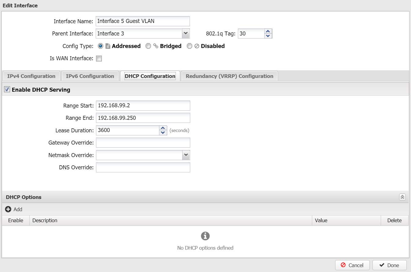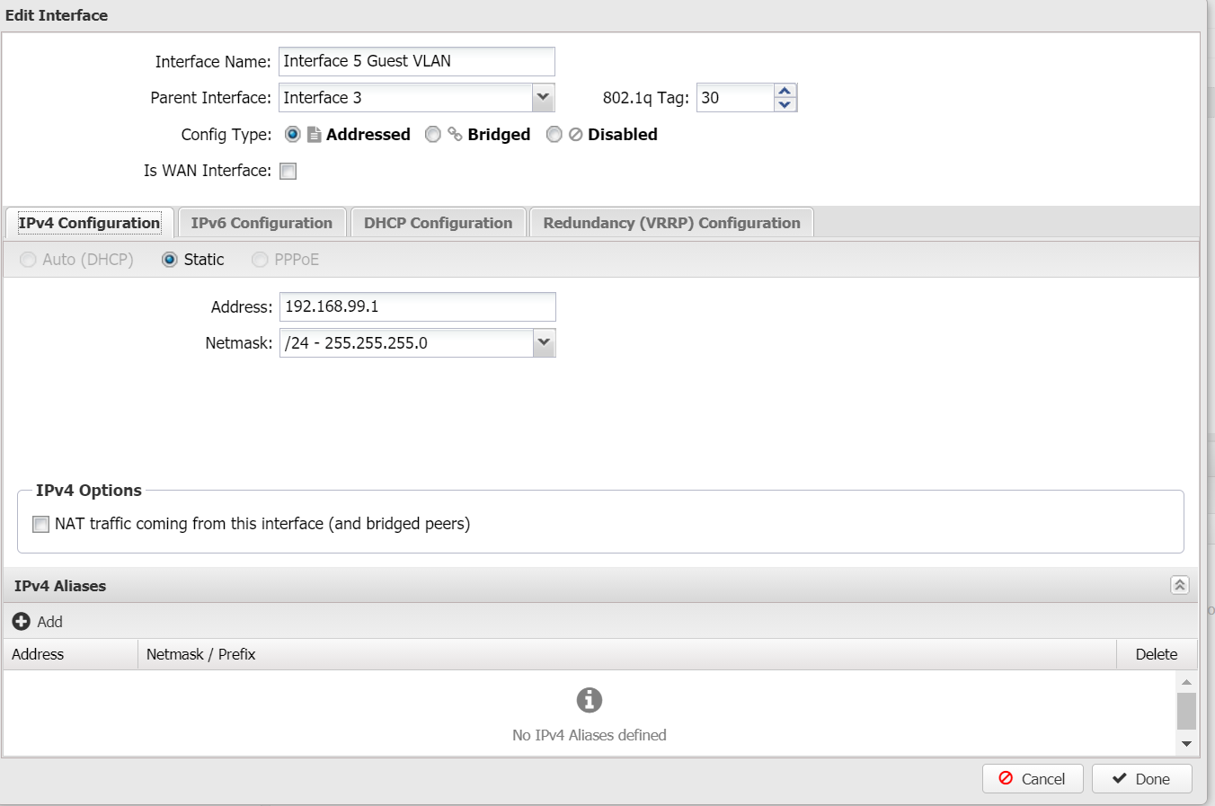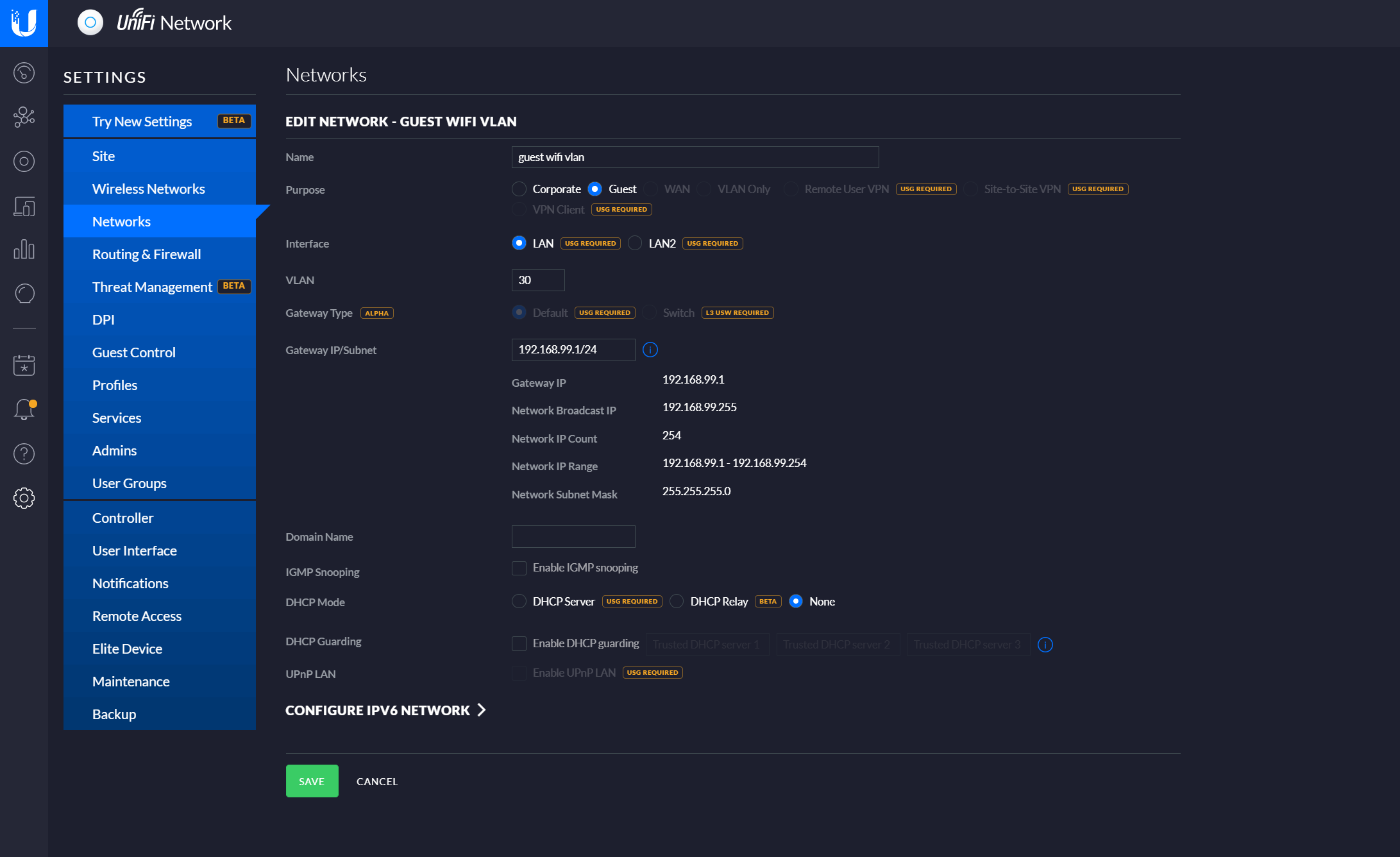 When a device connects to the guest ssid on the ubnt AP’s, I get the 169.254 ip address of death. I can see the 169.254 IP in the ubiquiti controller, but not the untangle UI. I don’t see any traffic coming from the VLAN either.