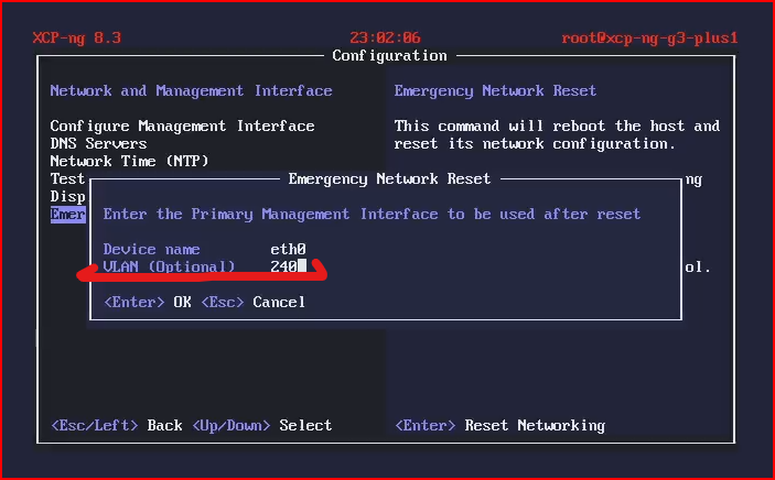 xcp-ng interface management VLAN: empty